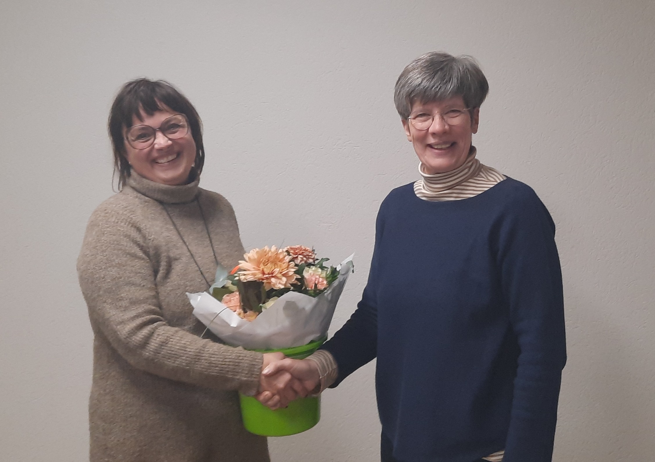 Dazu gratulierten ihr die Berufskolleginnen und Kollegen bei der letzten GeKo im November ganz herzlich; Ute Paschedag, Vorsitzende, überraschte die Jubilarin mit einem Blumenstrauß.