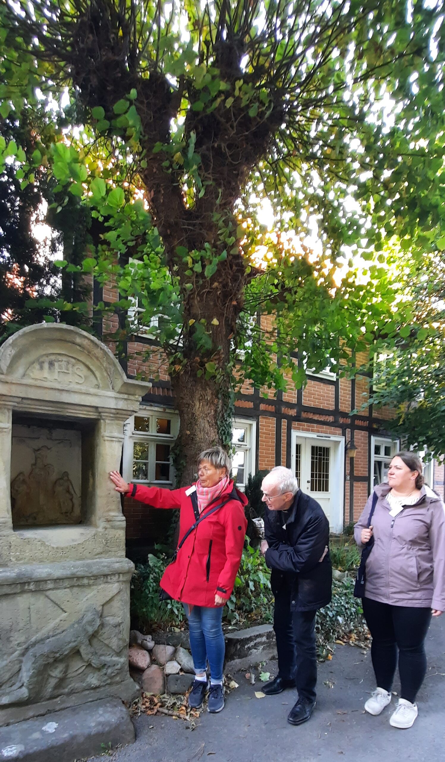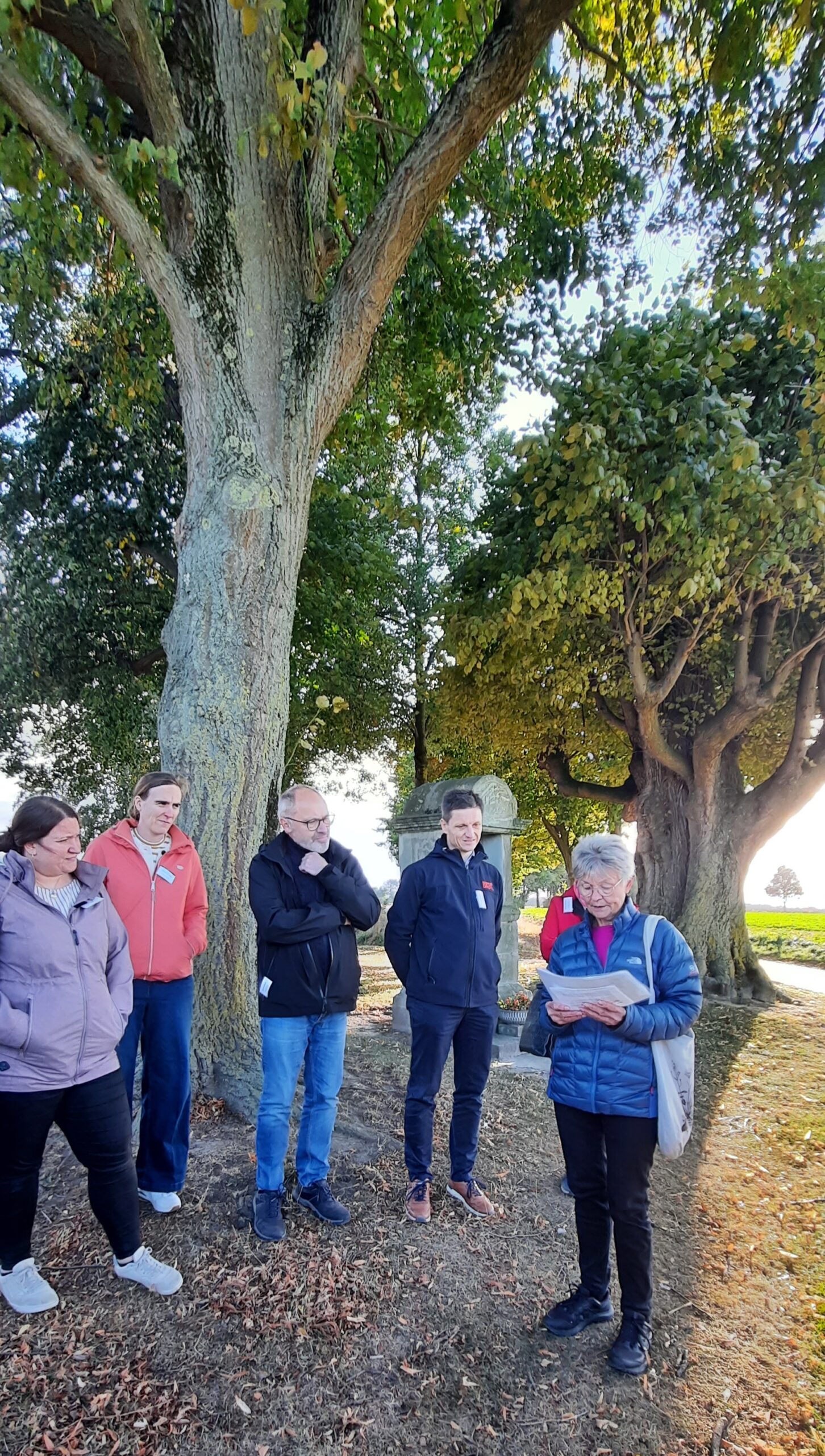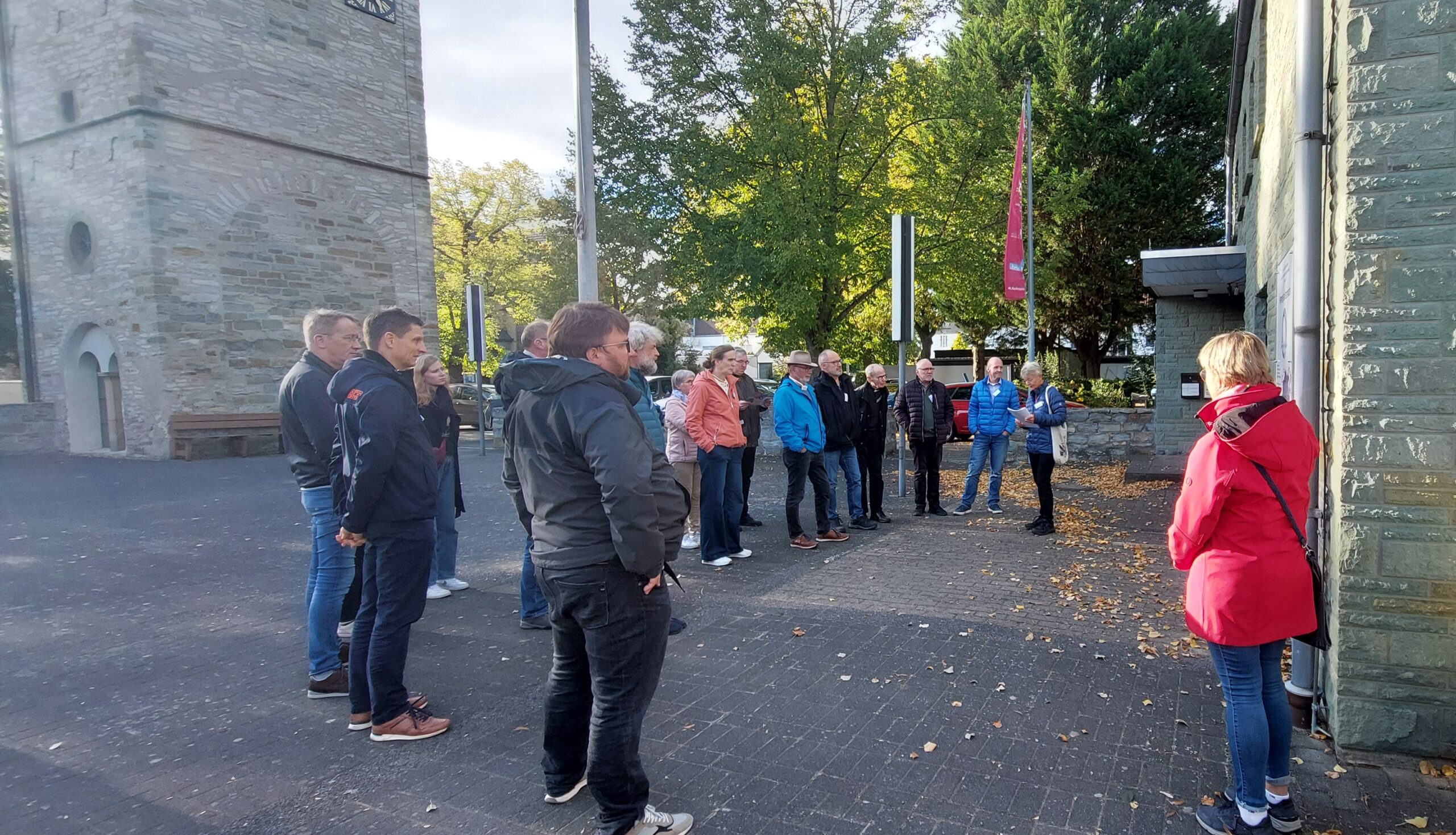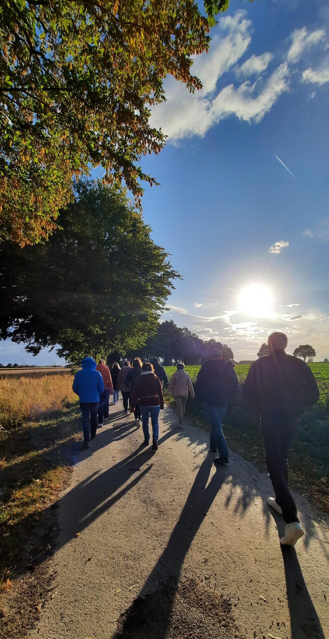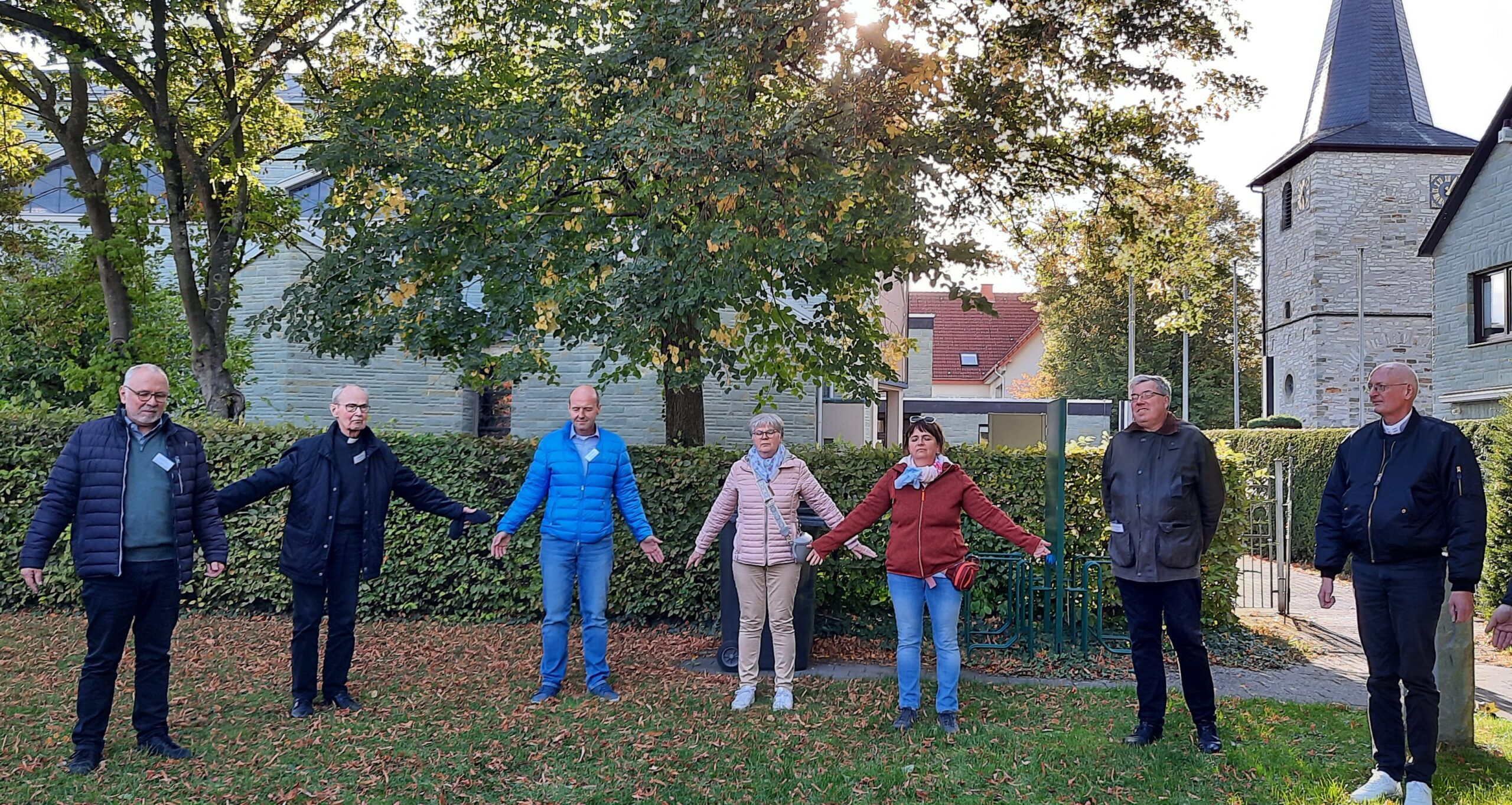 Vorm gemütlichen Beisammensein am Oktoberfest Buffet gab es aber erstmal Nahrung für die Seele. Die „Erfinderinnen“ des Westernkötter Pilgerweges, Anette Sellmann und Elisabeth Hollenbeck, führten die gut 30 Ehren- und Hauptamtlichen rund 5 Kilometer um Bad Westernkotten. Mit biblischen und literarischen Impulsen sowie Fragen zu Nachdenken ging es in angeregten Gesprächen von Pastors Garten über die Schäferkemper Wassermühle zur Josefslinde. Dem beeindruckenden Baum, der eine Station der Lobetagsprozession bildet. Nach einem Impuls zum Thema „Leben und Tod“ ging die Gruppe ein Stück schweigend durch die Feldflur. Bei strahlender Herbstsonne und wildem Wind war die Schöpfung im Erwitter Bruch wunderbar erfahrbar und alle konnten die angekündigten „Weite“ beim Laufen spüren. Den Abschluss bildete eine Station an der Saline mit Kostprobe des gesunden Salinenwassers.