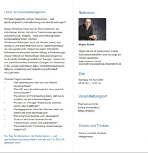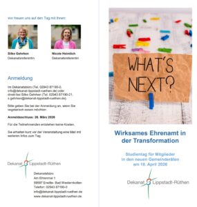 Anmeldungen unter info@dekanat-lippstadt-ruethen.de oder unter Tel. 02943-87190-0 sowie direkt bei den Referentinnen.